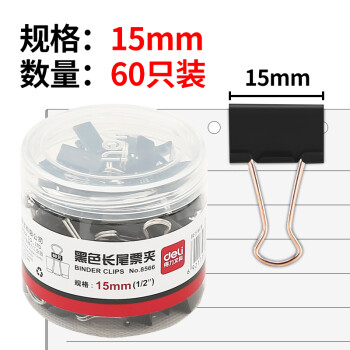 得力長(zhǎng)尾夾黑色票夾大號(hào)中號(hào)小號(hào)燕尾夾 鐵夾子小夾子文具整理夾盒裝蝴蝶夾金屬鳳尾夾 15mm(60只/筒)8566